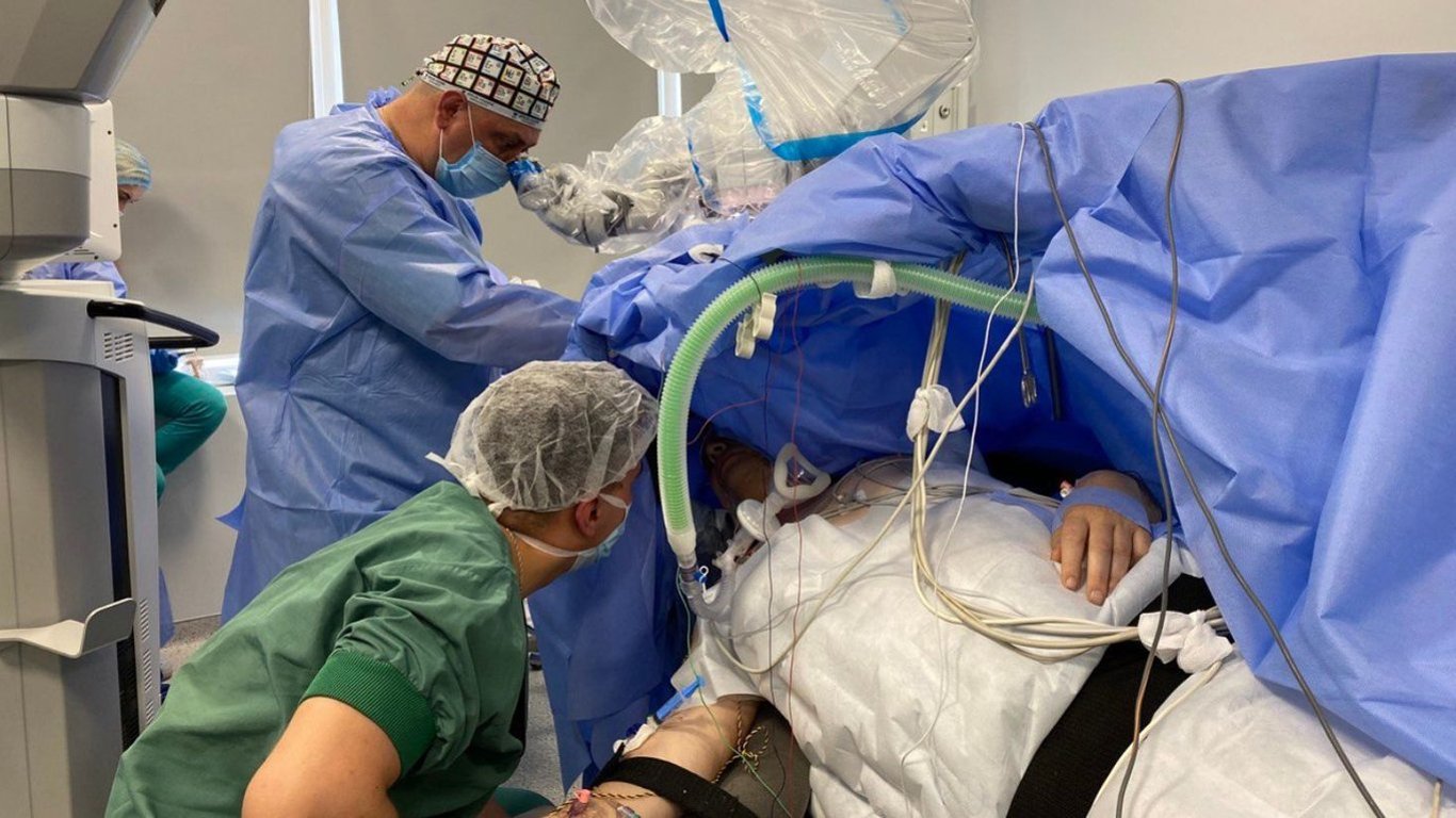 "Пухлину потрібно видаляти. Аби знизити ризики і не задіти під час операції важливі ділянки мозку, нейрохірурги ухвалюють рішення виконати операцію з пробудженням. AWAKE SURGERY — це операція, під час якої пацієнта будять перед безпосереднім видаленням пухлини. І цю частину втручання людина на операційному столі перебуває при тямі", — пояснили фахівці.