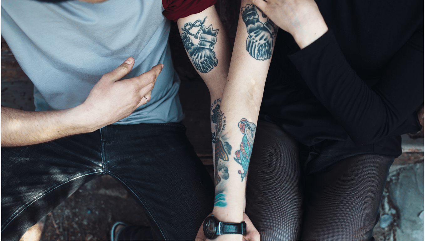 Пара показывает свои татуировки на руках. Фото:freepik.com