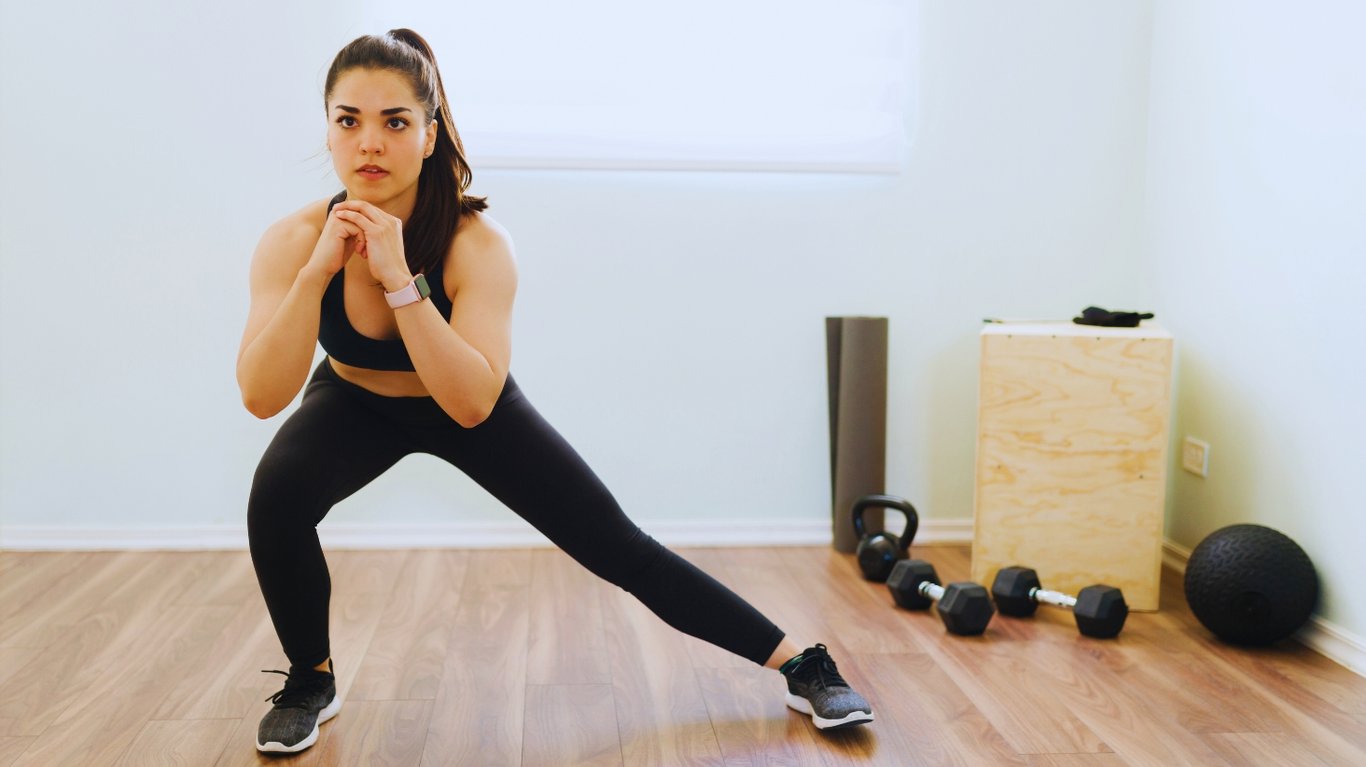 Боковые выпады влияют прежде всего на наружную поверхность бедра, создавая приятные изгибы бедер, если смотреть на них спереди. Начните стоять, расставив ноги на ширине плеч. Сделайте большой шаг в сторону, держа пальцы обеих ног в одном направлении.