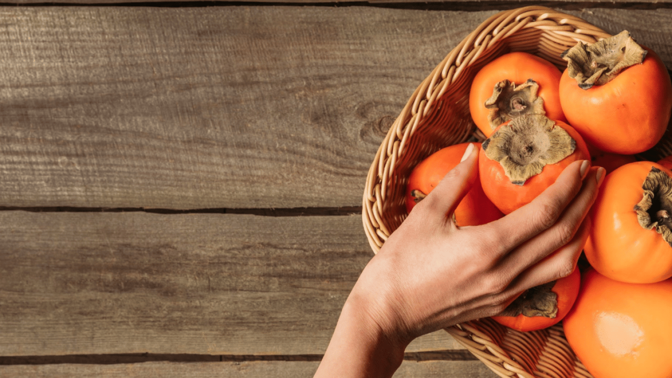 Людина, яка тримає багато хурми у тарілці. Фото: Freepik